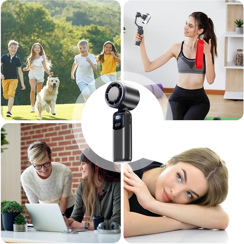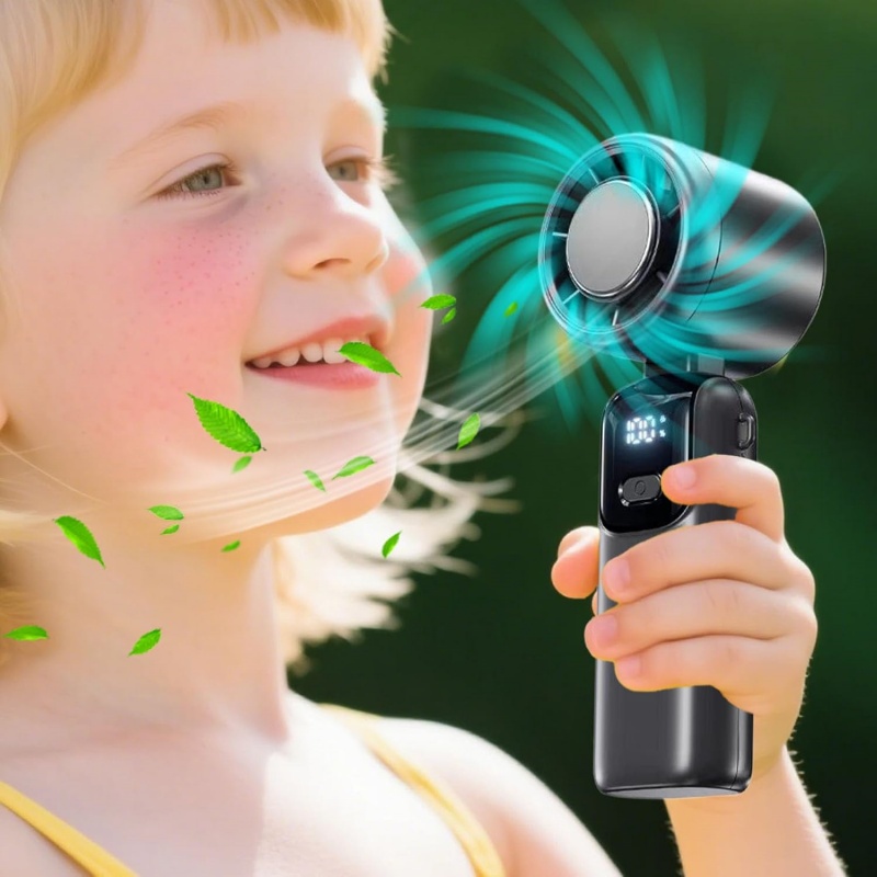 This foldable handheld fan is designed for powerful, portable cooling wherever you go. With its compact body, turbo airflow, and foldable structure, it can be used by hand or placed on a desk, making it ideal for the office, home, kitchen, travel, camping, and outdoor activities.