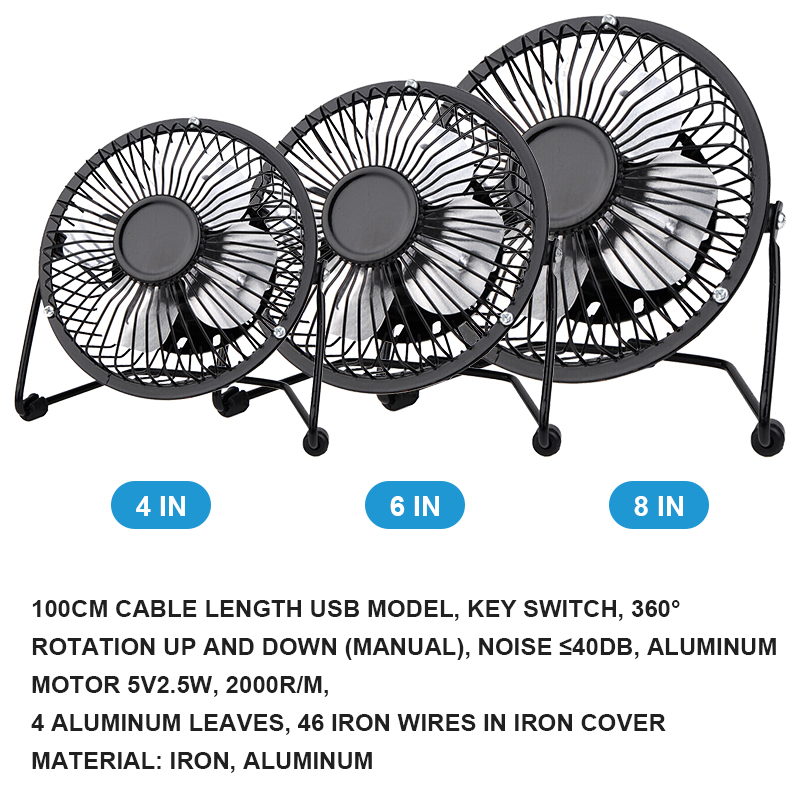 Portable Mini USB Cooling Fan 360 Small Desktop Desk Quiet Computer 4 6 8 Inch 20.3x20x11