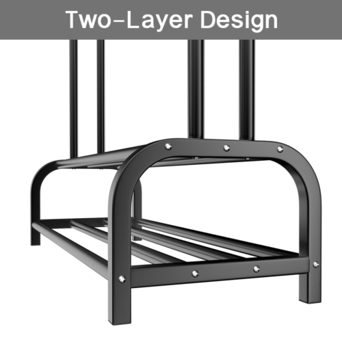Heavy Duty Metal Double Clothes Rail Rack Garment Hanging Shoe Storage Shelf-black