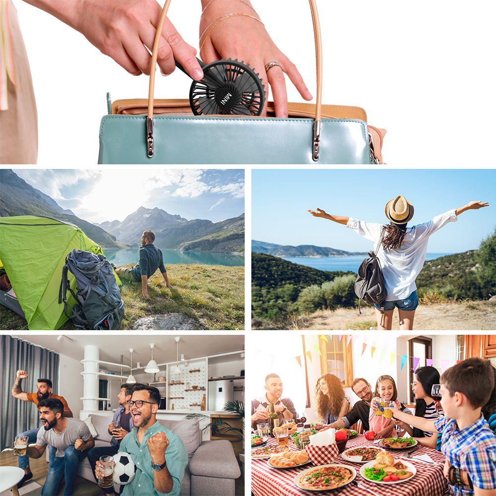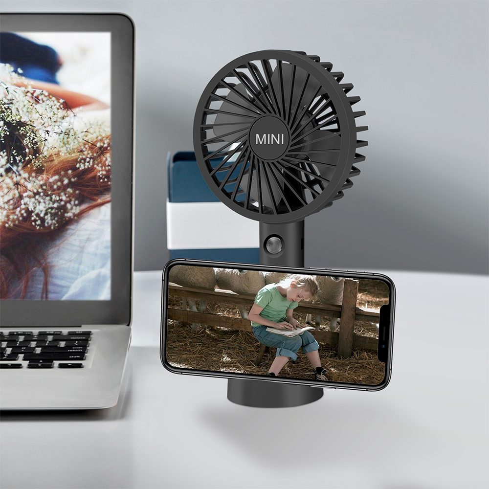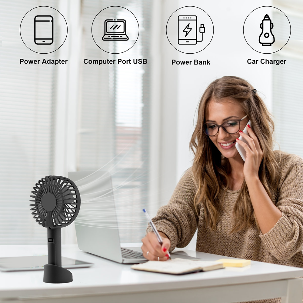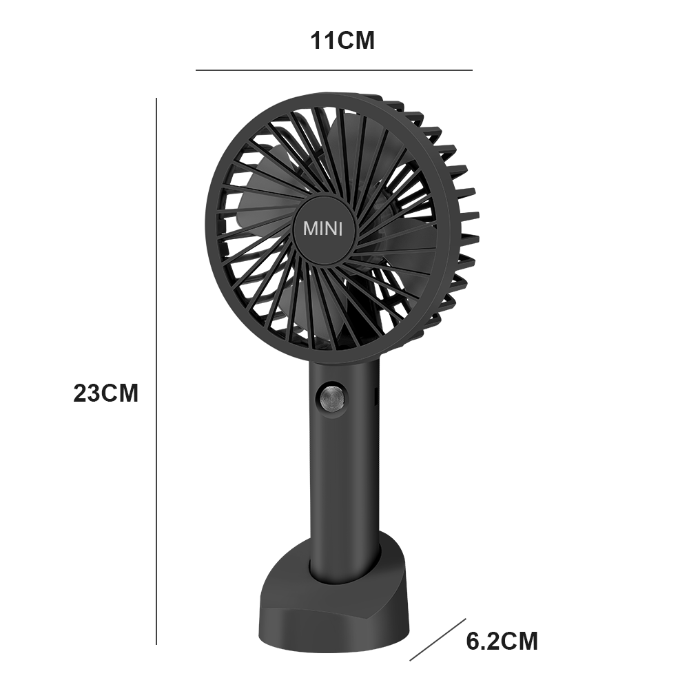 ABOUT THIS ITEM Adjustable Wind Speed: Features 3 wind modes, switch freely by the power button. USB Powered: With a rechargeable 1200mAh battery, you can use the USB charging cable link to computers, power bank, laptops, and other devices to enjoy cool wind no matter where you go. Base Support: With the supplied base, stands up on the desktop more stable. It can be used as a mobile phone holder for video watching. Mini Design: Easy to carry, can be put into your bag or use. Application: Perfect mini fan for the office, home, dorm, study, library, games room or outdoors. SPECIFICATIONS Condition: 100% Brand New and High Quality Color: Green, Orange, Yellow, Black, White (Optional) Material: ABS, PP Fan Size: 23x11x6.2cm Base Size: 6.1x3.8cm/2.40x1.50" Voltage: 5V Input Current: 0.5-1A Power: 4W Battery: 1200mAh Weight: 128g Working Time: 8 Hours (Sleep Mode) 3 Modes: Sleep, Natural, Powerful PACKAGE 1x Handheld Fan 1x Stand 1x Charging Cable 1x Rechargeable Battery