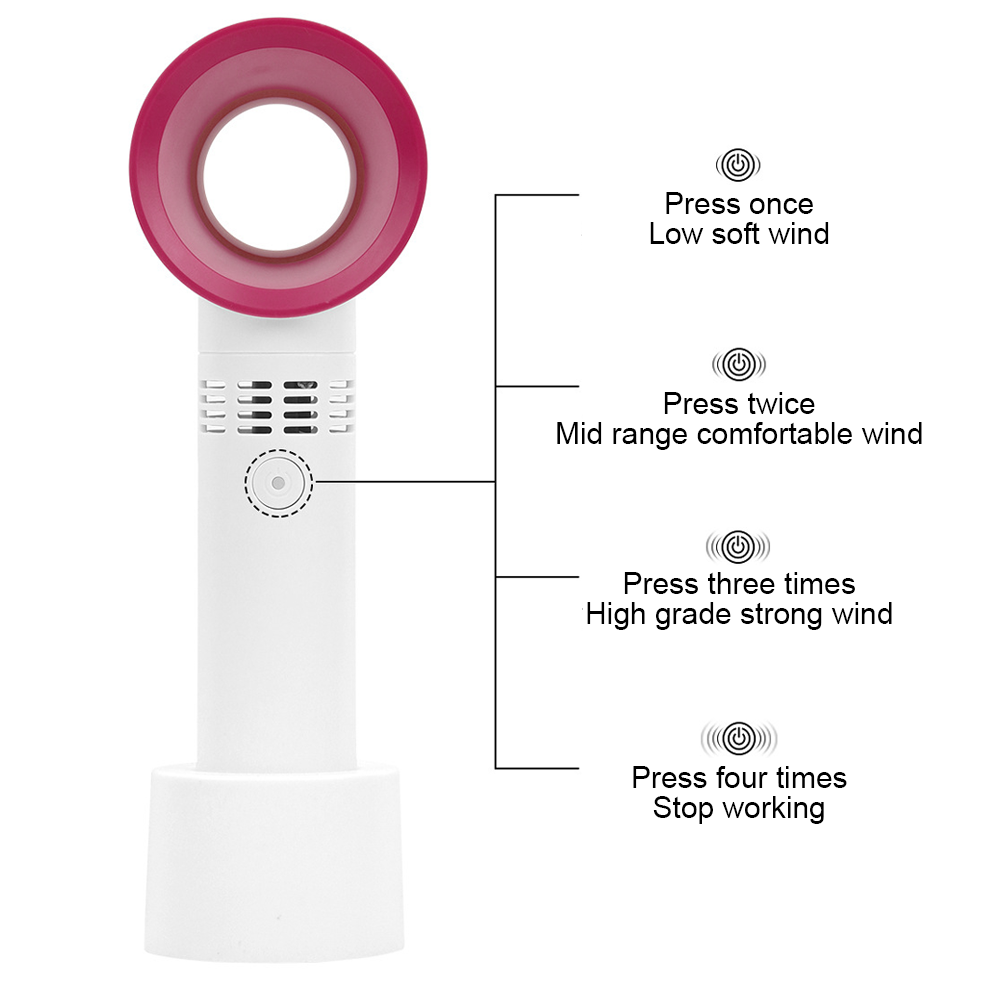 It has a unique bladeless fan with three fan speed levels: low, medium and high. You can choose according to your needs. USB charging port, which can be charged by computer and mobile power, which is more convenient for mobile use, light and compact design, can be carried anytime and anywhere. It absorb 360-degree wind, provide strong and gentle breeze, switch control speed and easy to use.