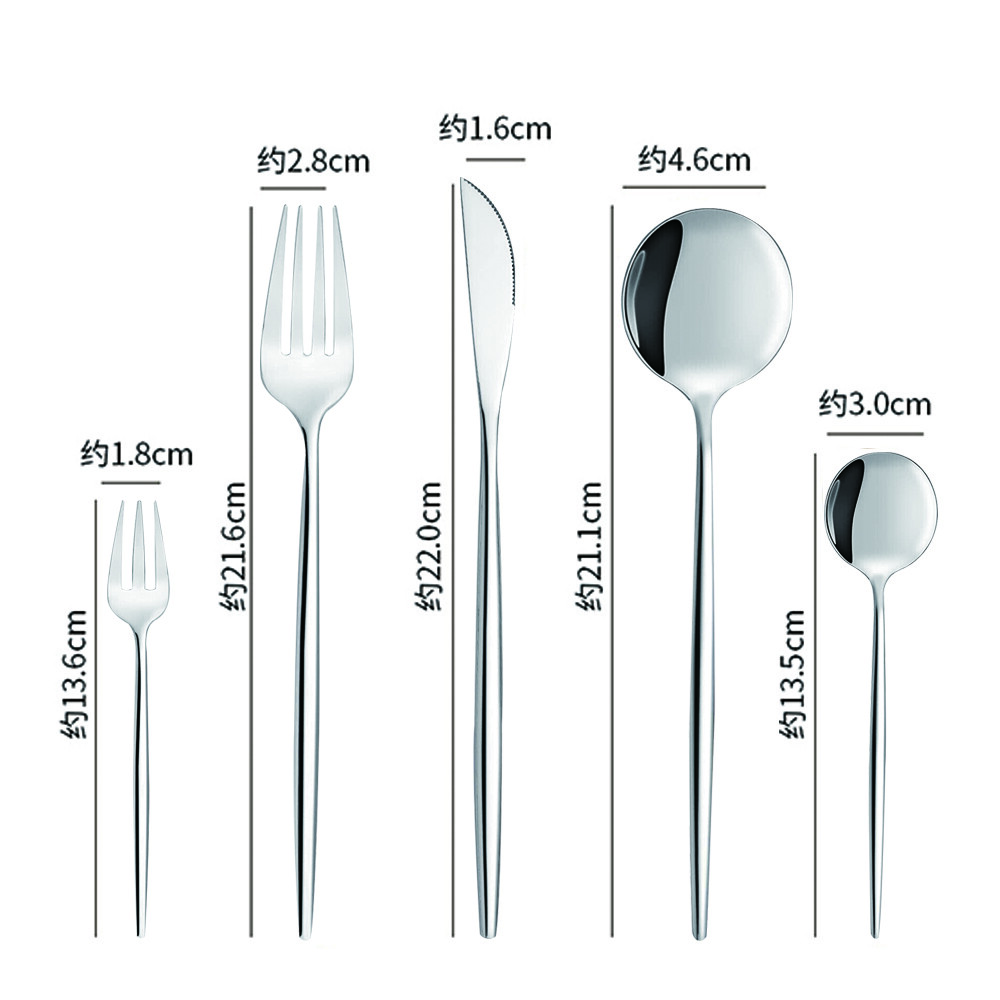 30-piece cutlery set: includes 6 knives, 6 forks, 6 fruit forks, 6 spoons, and 6 teaspoons. Made of premium high quality stainless steel, BPA free / lead free, Rust-resistant, sturdy and durable for years. It is so beautiful and nice to be a ideal gift. Durable and no rust: Made of high quality stainless steel, does not bend; strong anti-rust, smooth mirror polishing edge without rough spot that hurt your mouth. They are perfect for parties, weddings, birthdays or special occasions. Easy to clean provides good grip. Looks and Feels good in all conditions, perfect for parties, wedding , events, Thanks for Giving, Chrismas, New Year Event. Perfect for home, hotel, restaurant, out door. The luxurious and noble tableware is your best choice for gifts. It can be used as gifts for various holidays, wedding gifts, birthday gifts, etc. Easy Clean and Dishwasher Safe Durable and Comfortable Because of the use of high-quality stainless steel materials, the tableware is endowed with premium quality. While ensuring its durability, it also meets food-grade standards. Excellent anti-rust and anti-scratch ability can keep your tableware always the same as new, and the right weight can bring you a more comfortable gripping experience. Combining all of the advantages, so that this set of tableware is undoubtedly worthwhile Buy. Stunning in any ocaasion This high-quality cutlery set can easily cope with any occasion, whether it is family dinners, parties, restaurants, holidays, or weddings. Unique tableware can bring you a more luxurious and elegant dining experience, you will not regret buying this set of silverware. I firmly believe that you will love this set of tableware. Warm notice: 1、Please wash the flatware set with warm soapy water before first using to wash off any residue left from the manufacturing process. 2、Please clean and dry the cutlery set after using for your healthy daily use, stored in dry place for its durability. 3、Please be careful when using them. Pointed items included, please keep them away from kids. High Quality and Durable Material Made of high quality stainless steel, does not bend; strong anti-rust, smooth mirror polishing edge without rough spot that hurt your mouth. They are perfect for parties, weddings, birthdays or special occasions. Easy to clean provides good grip.